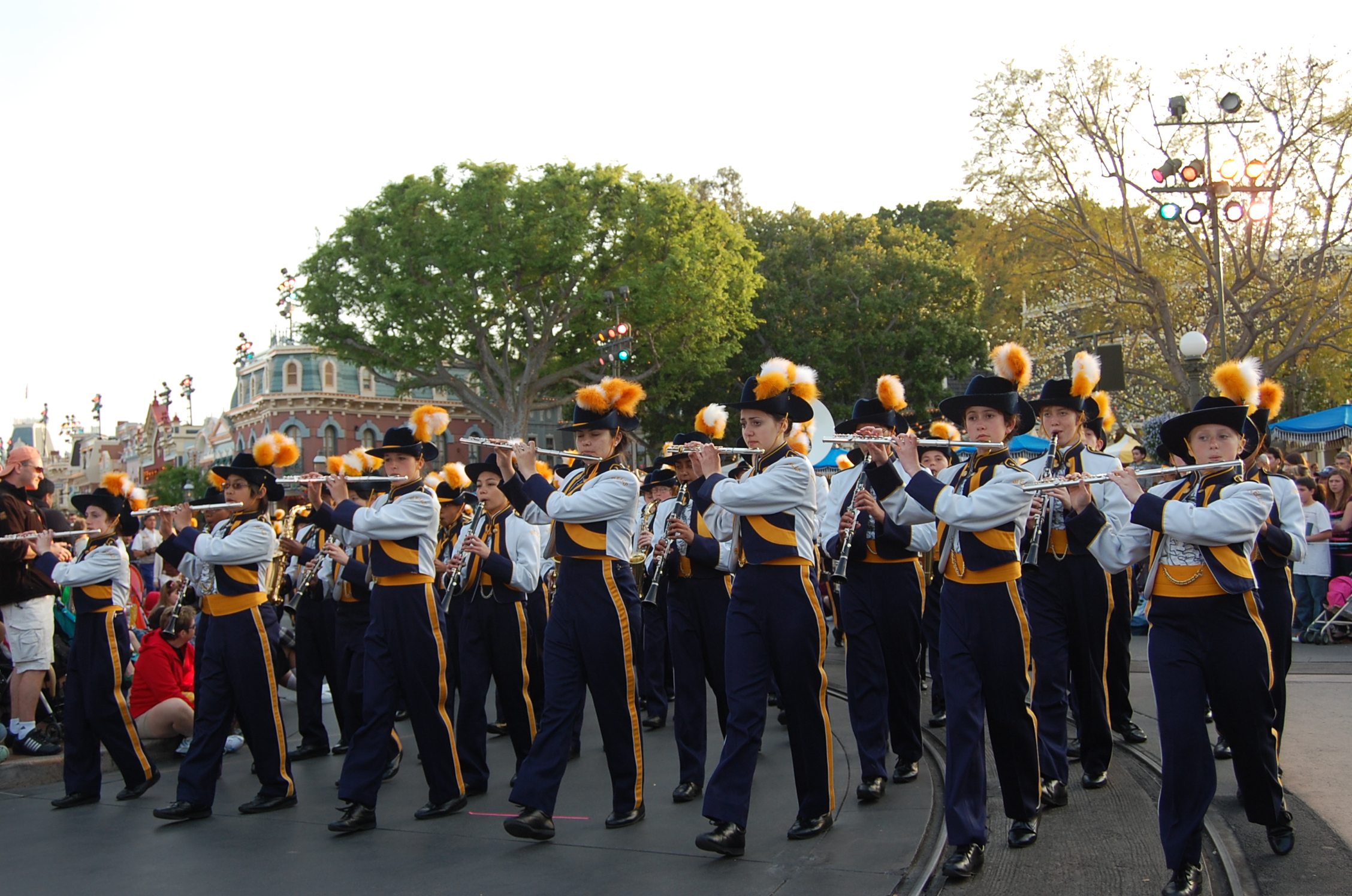 Wells stepped off at 6:30 p.m. in the twilight, marching down Main Street U.S.A. led by Drum Major Katie Josey. They made their way through the park in advance of Disney’s evening parade playing such Disney favorites as “Be Our Guest” and “Supercalafragilistic.”