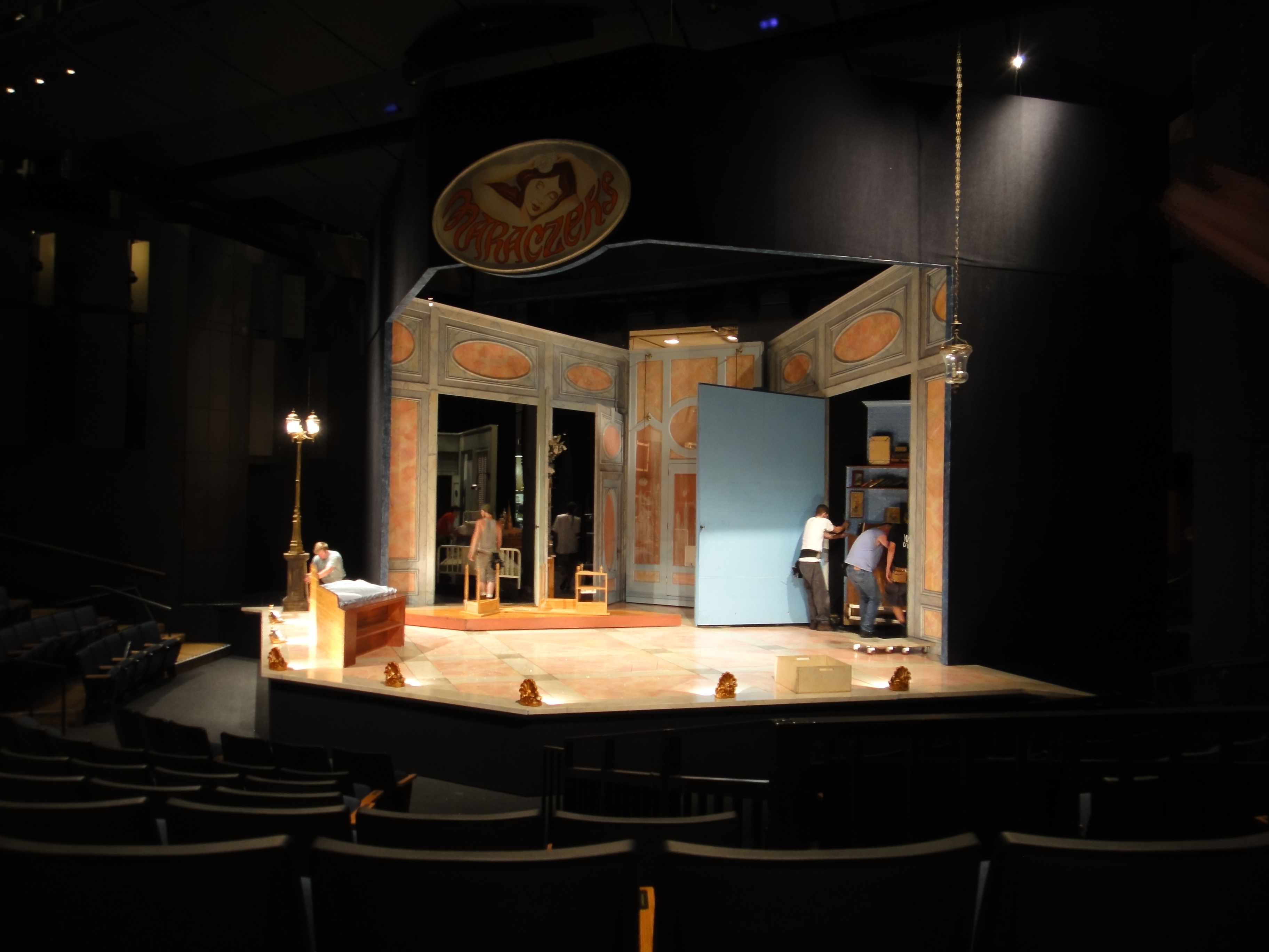 In-between plays students and chaperones were led on a backstage tour by Oregon Shakespeare Festival company members including actors Rex Young (who is currently appearing in Twelfth Night as Sir Andrew Aguecheek) and John Tufts (who is currently appearing in Henry IV Part One as Prince Hal). Mr. Tufts has previously played Puck in “A Midsummer Night’s Dream”, Romeo in “Romeo and Juliet” among many other starring roles. Backstage tours are always interesting… but a backstage tour led by two accomplished actors added a unique perspective for the Dublin High Drama Club students. The tour highlighted the extraordinary teamwork, organization and planning required to mount a production at the caliber of the Oregon Shakespeare Festival.