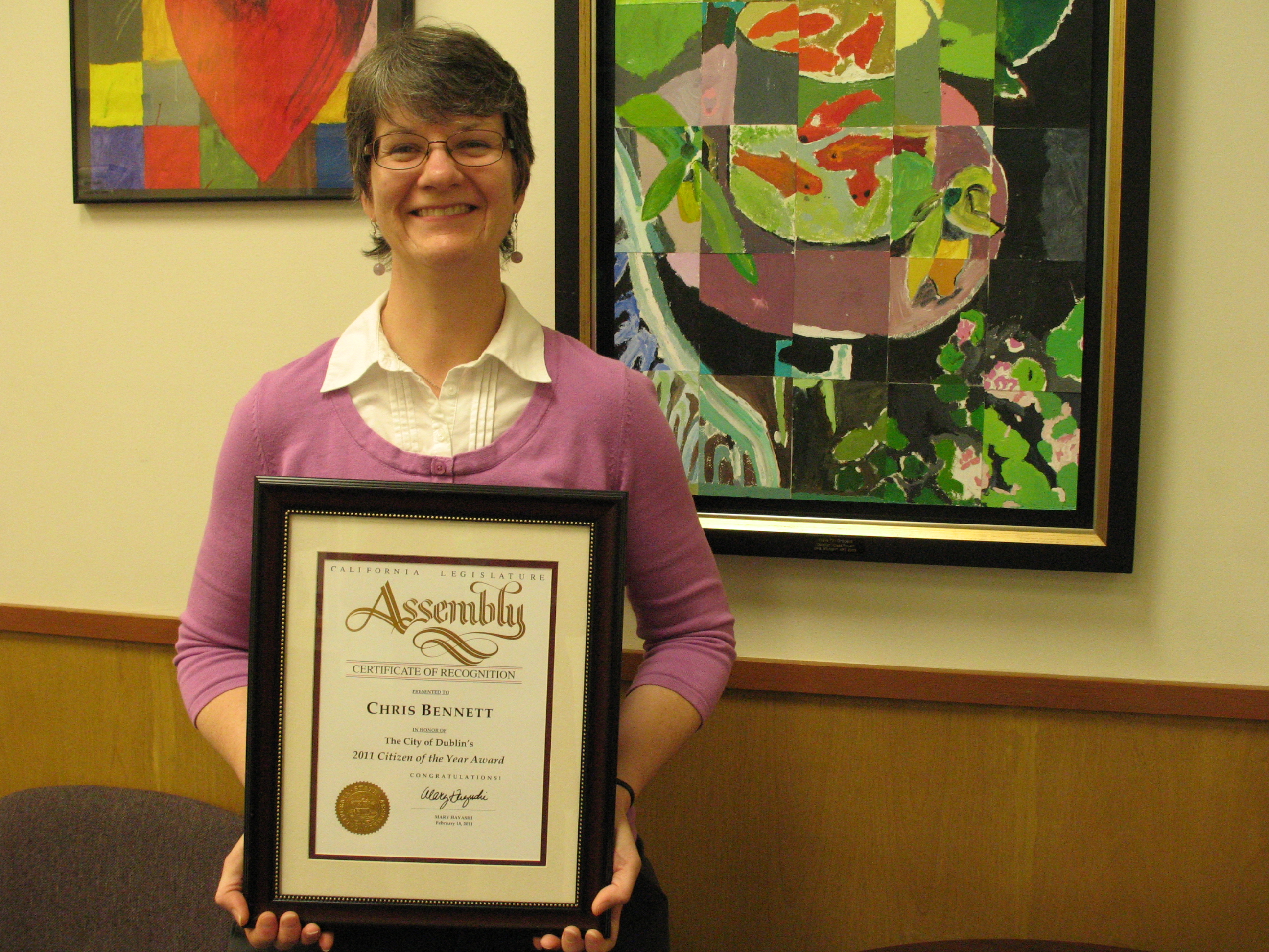 In order to win an award, you must be nominated. In this case, we sought out the author of the nomination letter and her approach. Chris Bennett’s nomination letter for the 2010 Dublin Citizen of the Year was submitted by Ms. Kristen Finn. Kristen is a parent of two children within the Dublin Unified School District and is an active parent volunteer at both Wells Middle School and Dublin High School.