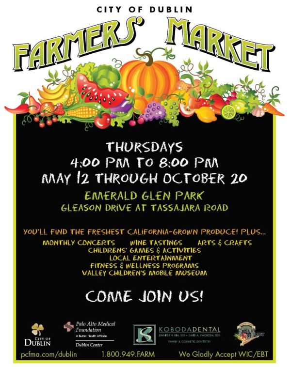 Dublin turned out Thursday evening at Emerald Glen Park for the first City of Dublin Farmers’ Market of the season. City of Dublin Mayor Tim Sbranti formally opened the event with a ribbon-cutting ceremony and Dublin High School’s Jazz Band provided entertainment. The City of Dublin Farmers’ Market continues on Thursdays from 4pm – 8pm. Every first Thursday will feature a concert in the park and wine tasting from local vintners including samples from local restaurants. Community nights will be held every second and fifth Thursday featuring local talent from Irish Dancers to jazz bands, the third Thursday of each month will be family night and the fourth Thursday will focus on healthy living. Based on the opening night turnout, the City of Dublin’s Farmers’ Market looks to be a hit with the community.