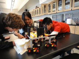 Dublin High School’s Engineering Academy, which was recently awarded a California Partnership Academies grant and is set to expand for the 2011-12 school year, recently won first place at Gunn High School in a Project Lead the Way robotics regional contest. Three Dublin High freshmen, graduates of both Fallon and Wells Middle Schools, teamed up to design and build a robot for the challenge. All three are currently enrolled in Dublin High’s Principles of Engineering course. The competition required the students to design and build a programmable robot to complete a defined challenge in the shortest amount of time possible (Dublin High’s robot successfully completed the task 2 minutes faster than the nearest competitor). A month of hard work paid off for the students – each was awarded a $300 Amazon.com gift card for the win.