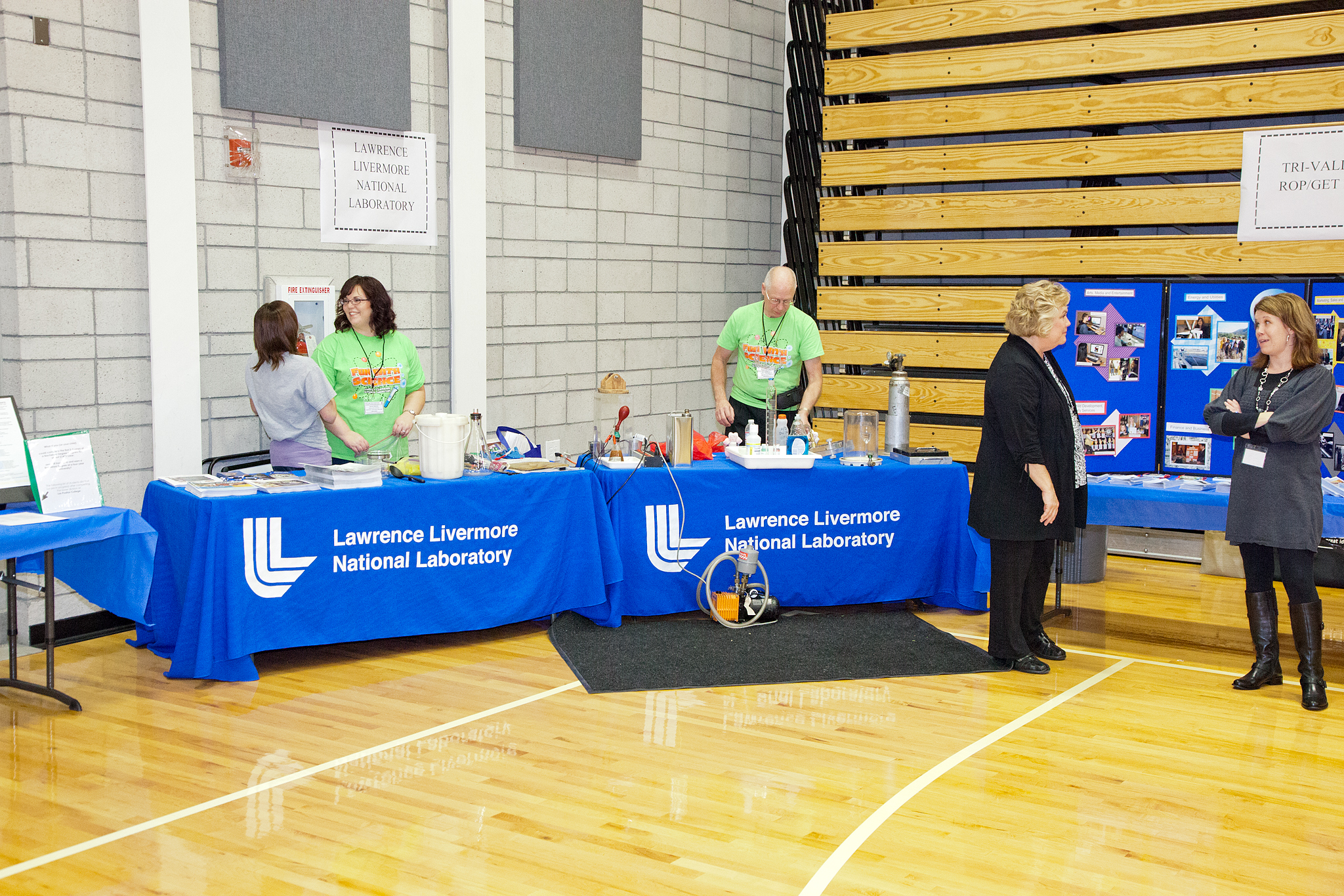 Jim Bono presented the check to Dublin Unified School District Superintendent Dr. Stephen Hanke, School Board President Greg Tomlinson, Principal Carol Shimizu, Assistant Principal Bill Branca and Student Body President Tatum Wheeler. Lawrence Livermore National Laboratory also contributed a Demonstration Station at the event with their ‘Fun With Science’ program featuring interactive science activities. Twenty local schools, colleges and organizations participated in the event. Dublin High engineering and Robotics Club students also built a duct tape suspension bridge as part of the National Engineers Week celebration.