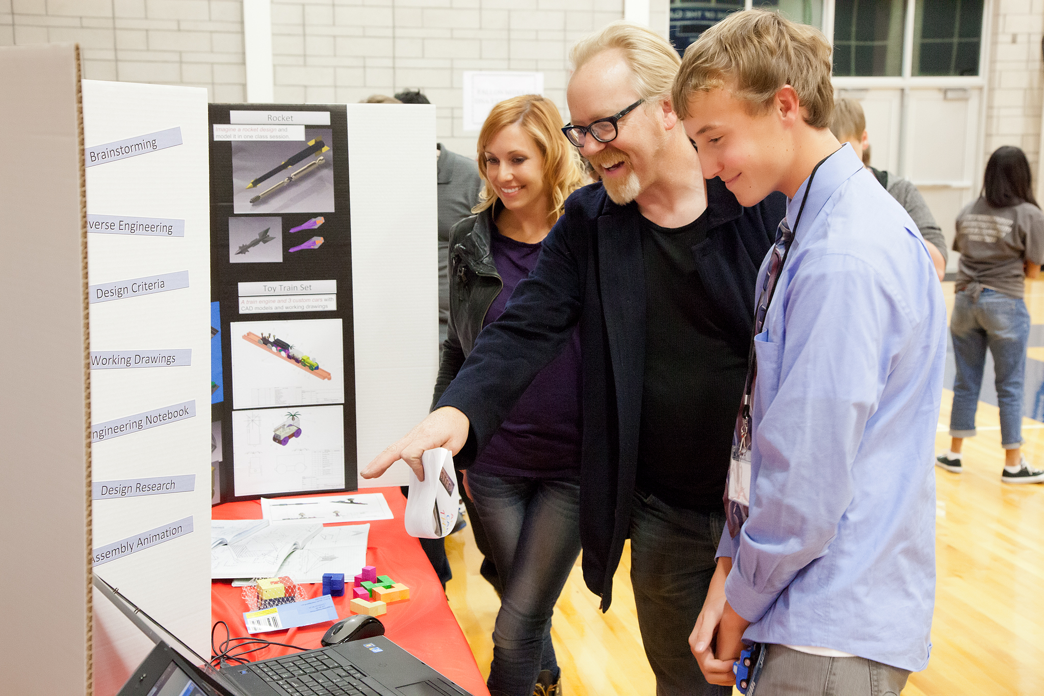 The Dublin High School Engineering and Design Academy Open House Starring MythBusters started with a bang last Wednesday, but not the explosive kind. Before the entrance of MythBusters stars Adam Savage and Kari Byron, Jim Bono (Director of Public Affairs – Lawrence Livermore National Laboratory) presented a donation of $10,000 to Dublin High School’s Engineering and Design Academy. The $10,000 donation builds on over $100,000 in donations and grants to Dublin High’s Engineering Academy since the program launched in 2010.
