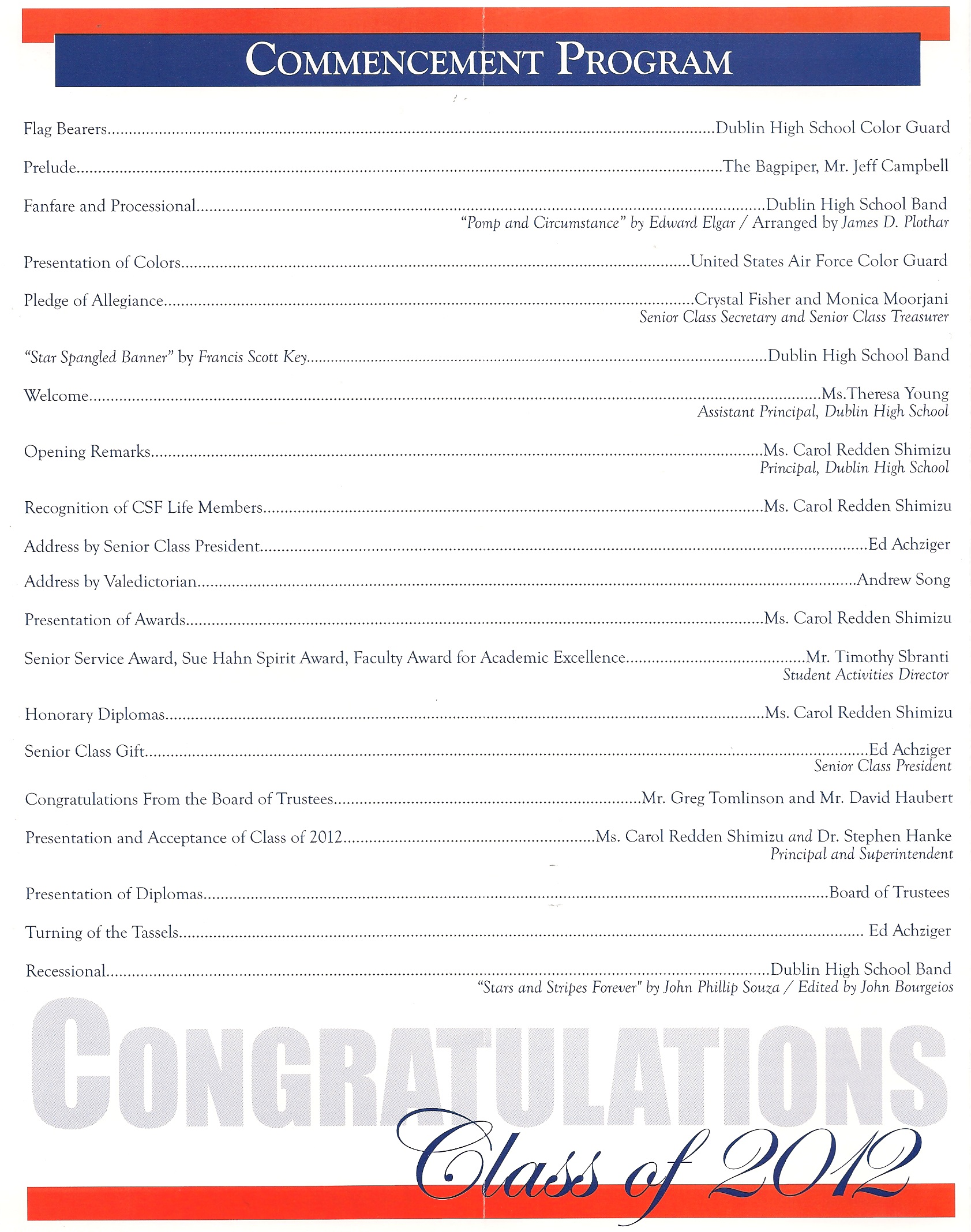 Dublin High School Class of 2012 Commencement: “Just Imagine”