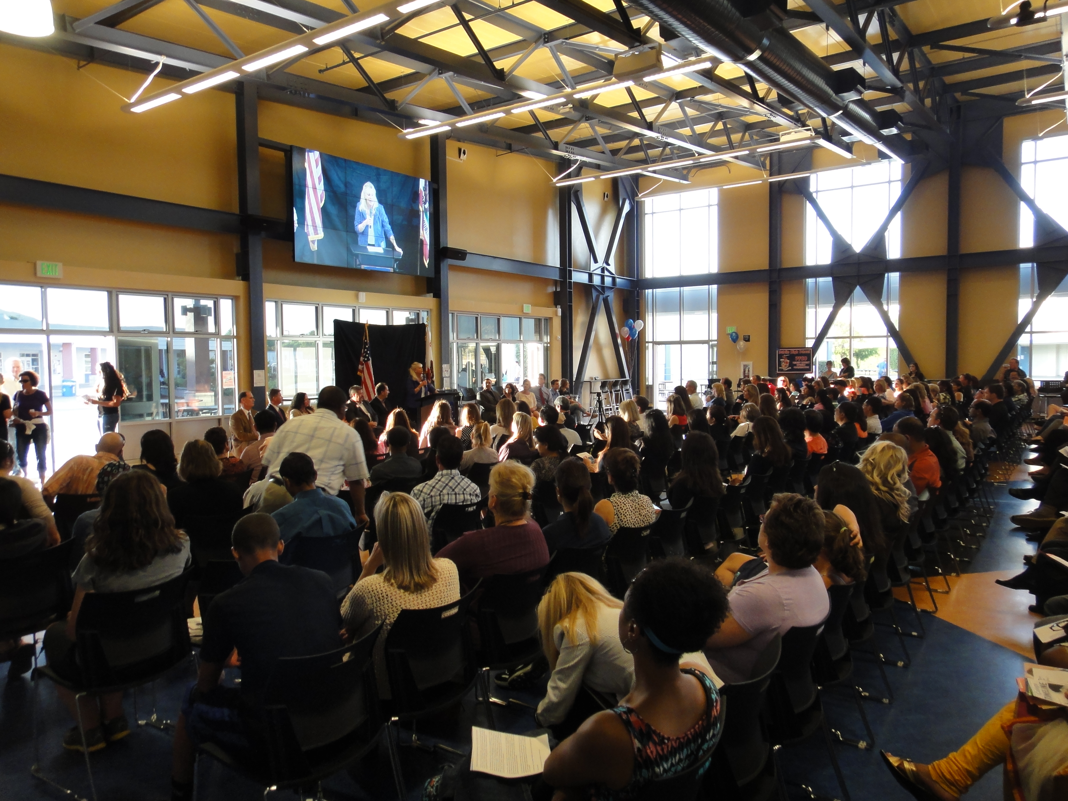 Last Thursday evening, Dublin High School hosted its annual Back to School Night. As it applies to similar events at each and every elementary and middle school site, Back to School nights are an opportunity for families to become more familiar with their respective schools and staff. At Dublin High, however, the parents/guardians in attendance were treated to a momentous event. Prior to the general session, a ribbon-cutting ceremony was conducted inside the new Student Union, Culinary Arts and Consumer Family Studies building.