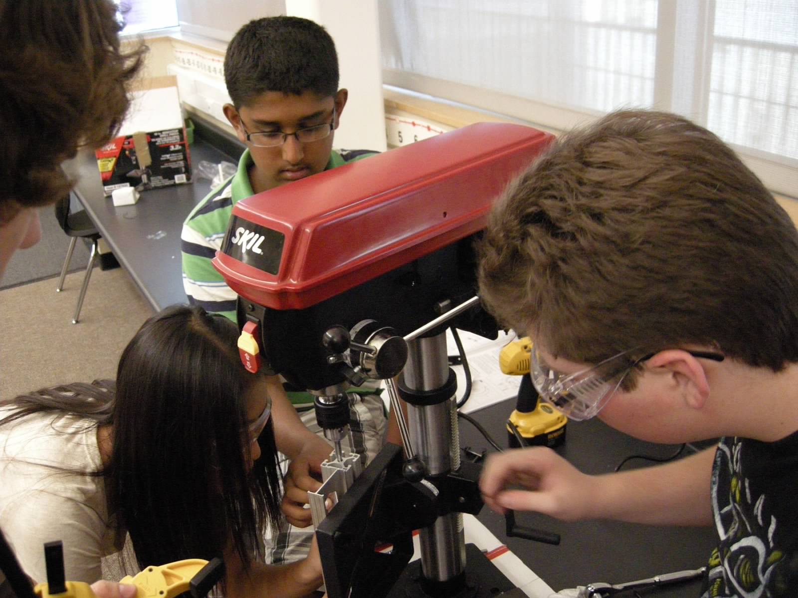 “We held a couple of Sunday brainstorming sessions, where we drew out our ideas on Ms. Chou’s whiteboards and planned out how to acquire materials and assemble the machine. About a week and a half before the event date, we began building, meeting nearly every day. Because this project was incredibly different from anything we were experienced with, we had to learn many new skills, like using the drill press, threading holes, and controlling motor output without using a microcontroller. We worked for a total of nearly 100 hours, making 7 or 8 trips to Home Depot, over the course of those four weeks.
