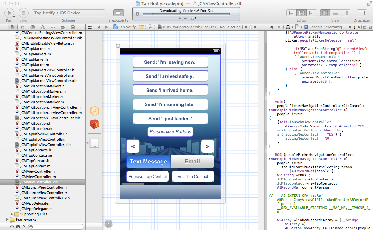 - Break down the problem. To code Tap Notify I needed to solve a series of problems. Here are some of them: how do I get the current location of the iPhone? How can I create a link to a Google Map image of the location? How can I make it easy for the user to send different canned messages with the location? How do I access the user’s address book? How do I tell the iPhone to send a txt msg? Each of these problems and a bunch more required research. In my current professional role leading a product management team, this process of breaking down the problem is the heart of the challenge; for a single developer it still makes sense to break down the problem before diving into coding. In many cases, and thanks to the community of coders, I was able to re-use the work of others (giving them recognition by including their legal terms in Tap Notify’s EULA – that’s the long Legal document you click-through when installing software). Stack Overflow is an excellent online resource when you get stuck with a programming problem.