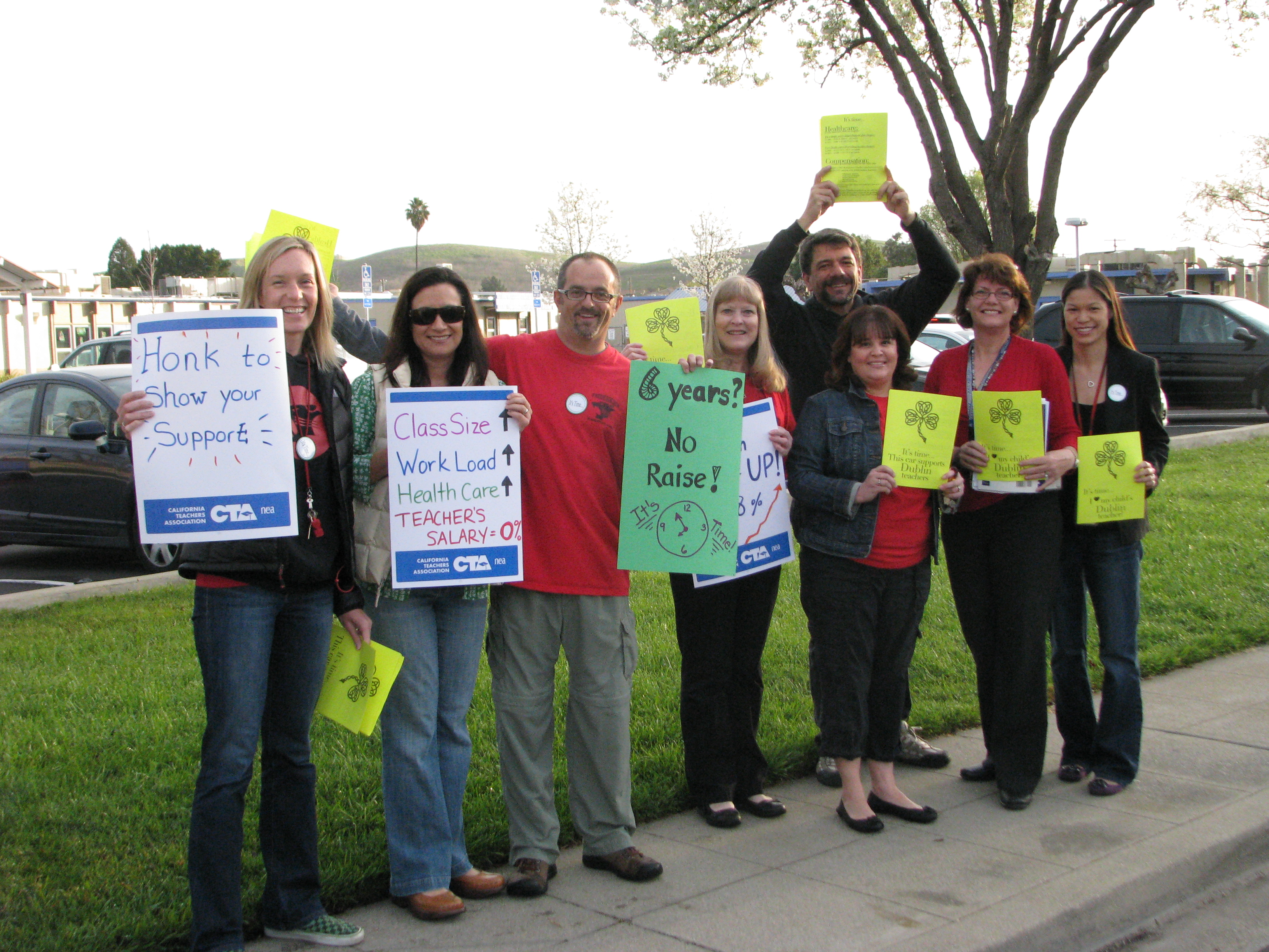 On Friday, March 15 a number of teachers from across the district and from each of the ten school sites elected to participate in a “public outreach demonstration” on the sidewalks of their respective schools. It was a coordinated event. Among their goals was to publicize the fact that Certificated Staff in the district have not received a compensation enhancement since 2007. Many parents at drop-off witnessed signs, balloons and may have received leaflets promoting the stance by the Dublin Teachers Association (DTA). Because this type of demonstration has been a relatively rare activity in Dublin, OneDublin.org decided to take a closer look. As with any examination of a contention between management and labor, it is frequently a multi-layered topic.