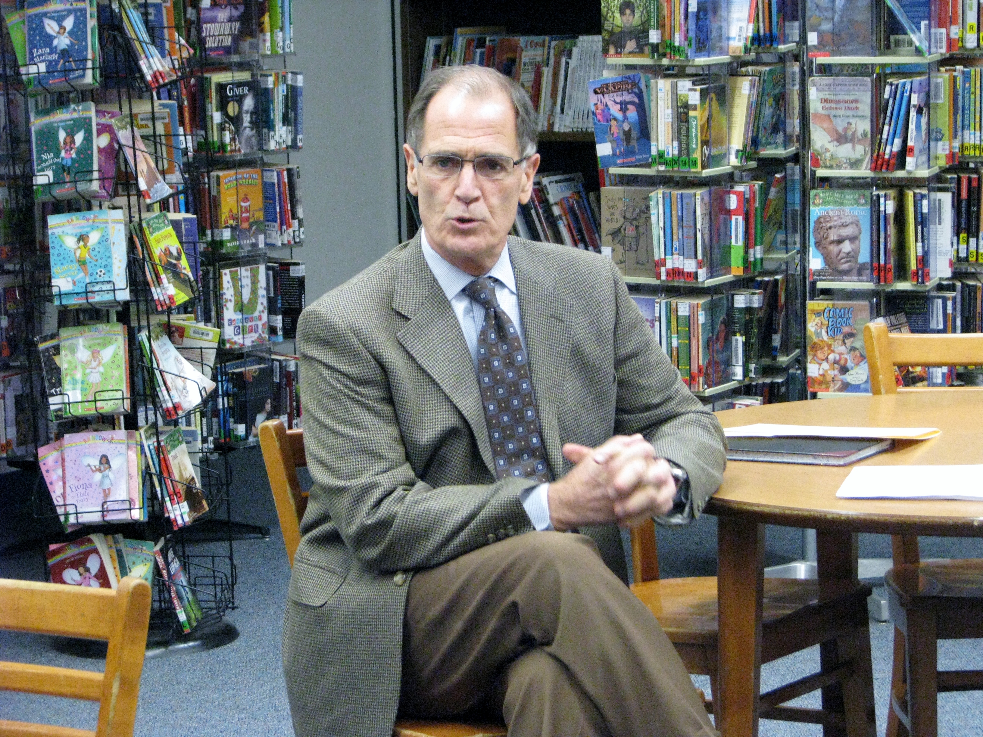On Wednesday evening, the Frederiksen Elementary PFC hosted an evening in the library with Dr. Stephen Hanke. The purpose of the event was to discuss growth trends in the District, new technology tools available to both students and staff and preparation for the new Common Core Standards.