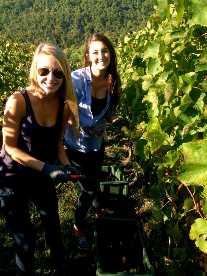 » Rebecca and friend Harvesting Grapes in Tuscany Italy