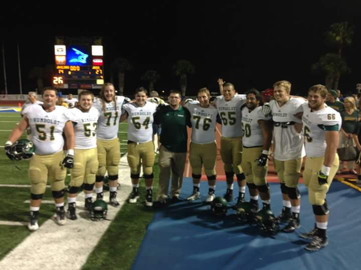 Cappa: “My first season I redshirted which means you do everything with the team except play in the games but the good thing is that gives you an extra year of eligibility. My second season I was actually able to play and I had the opportunity to start. Our first game was in Texas which was a bit intimidating. As we drove up to the stadium there was a huge, Texas-style tailgate with a ton of people. During warm ups I was a bit nervous but the nerves did not last. After I played my first snap all my nerves went away and I was just playing football again. We won that game which was a big confidence boost for my freshman season and that trip to Texas was probably the best football experience I have ever had. Following the game was a trip to The Alamo and almost no sleep was we flew and took the bus back to Humboldt.”