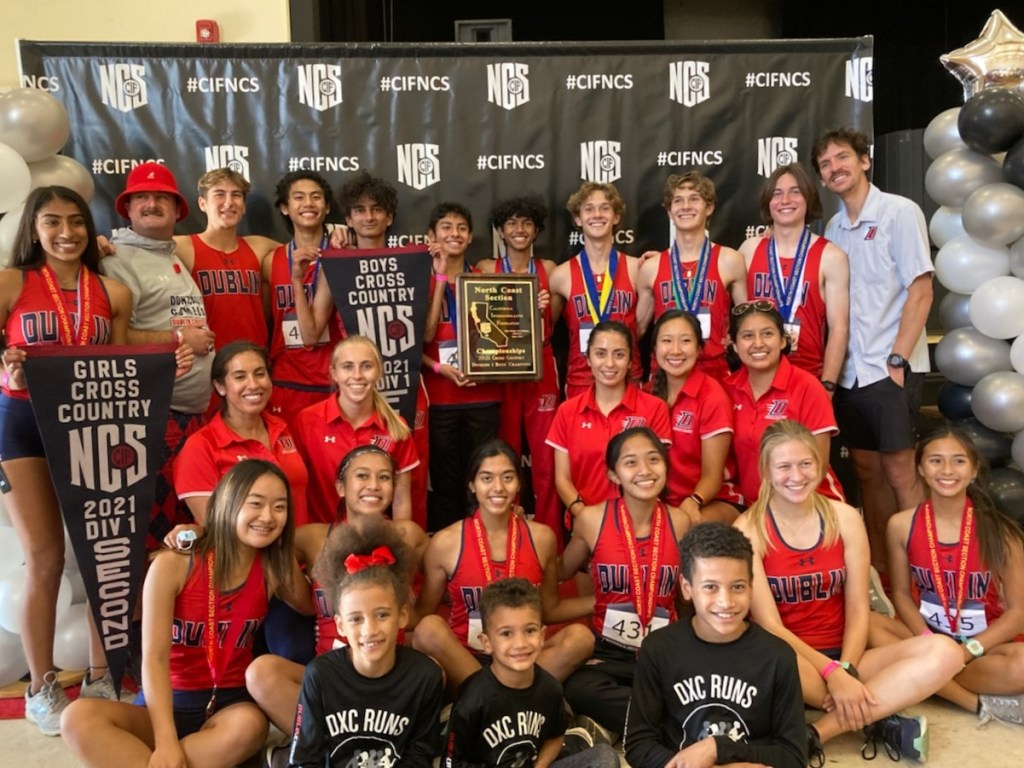 Prior to Thanksgiving, the team had been preparing to compete in the CIF North Coast Section Championship to be held at Hayward High School and hosted by Campolindo. Based upon previous successes and their training schedule, Williams felt that the athletes were poised for both team and individual success. However, the meet results may have exceeded even the most optimistic projections. Scores of students compete across five different divisions in the three-mile distance – Dublin High competes in Division 1. The girls team captured 2nd place and became the first girls team in school history to qualify for the California Interscholastic Federation State Championship. The boys team etched their place in the annals by winning their fifth consecutive NCS title. This achievement was further embellished by the fact that the finishers recorded the first ever perfect score (15-point performance) in history. To decipher: the first five finishers in this event of 53 elite runners were from Dublin High School. In sum, this is the first time that both teams have qualified to compete at the State Championships.