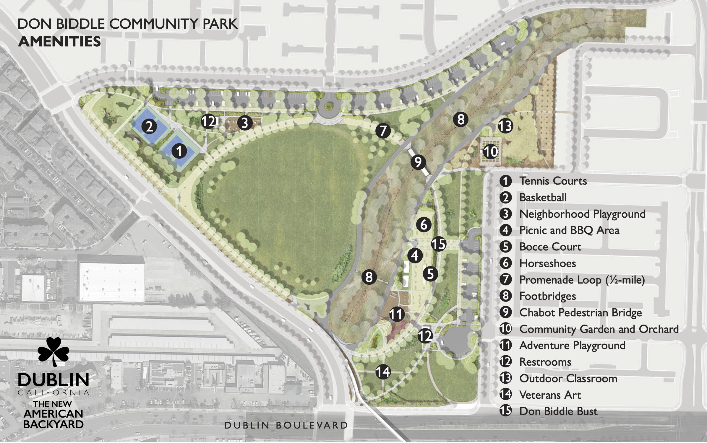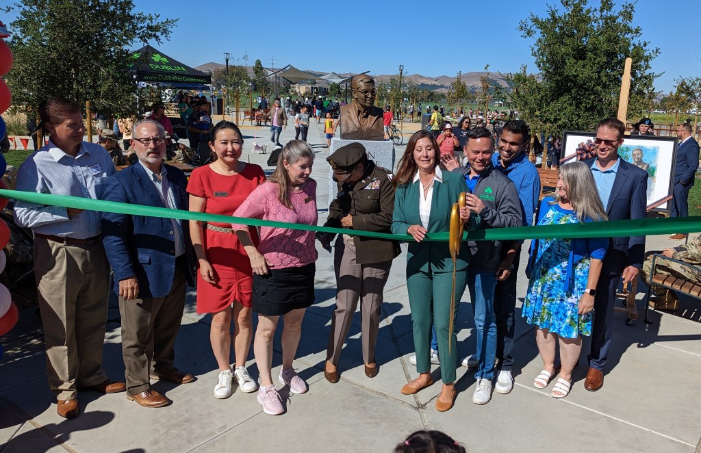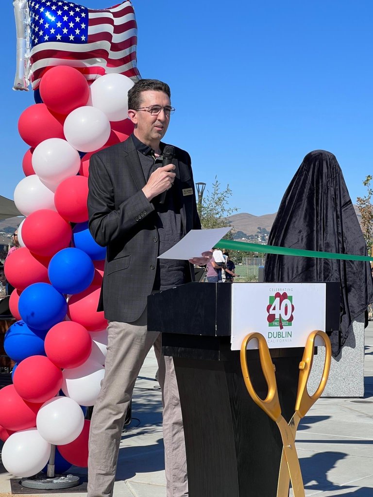 DUBLIN, CA–Dublin welcomed a new, 31-acre centrally-located park yesterday with a grand opening celebration that featured speakers, a ribbon-cutting, art unveilings, and an original poem read by James Morehead (Poet Laureate – Dublin, CA). The Don Biddle Community Park is named after former long-time Dublin public servant Don Biddle, who served the City in many capacities during his decades in Dublin. Biddle passed away in 2018 and was represented by his daughter Patricia Biddle.