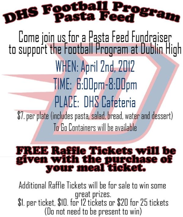 Attached please find a flier for the Football program’s Pasta Feed Fundraiser on April 2nd.