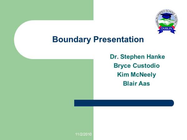 Regarding the Green / Fallon / Kolb issue, Dr. Hanke provided the following information today: “The Green / Fallon survey results will be discussed as a part of the Boundary Committee Report / Recommendation to be presented at the 11/2 Board Meeting. November meetings are the first and third due to Thanksgiving week.”