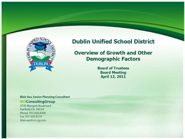 - An extensive presentation (150+ slides) on the Governor’s Budget Proposal for 2011-12 and the overall economic outlook as it impacts California education and Dublin Schools will be summarized (read more…)